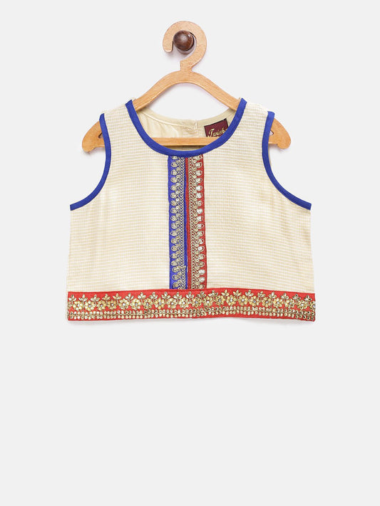 Twisha Girls Embellished Top With Printed Dhoti Pants - Off White & Red