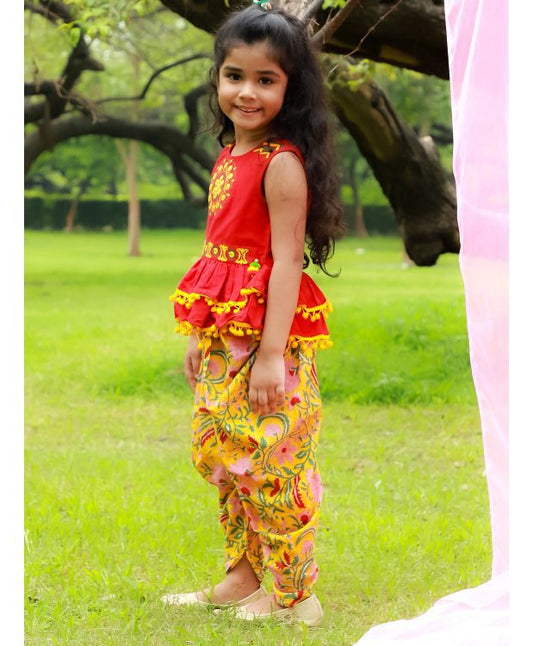Twisha Girls Peplum Top and Dhoti - Red & Yellow