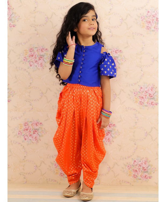 Cold Shoulder Top with Dhoti- Blue & Orange