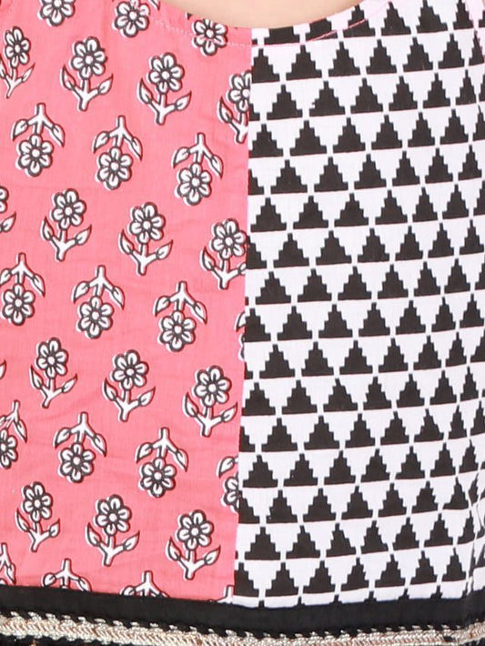 Twisha Girls half & half print top with printed Dhoti set - Pink & Black