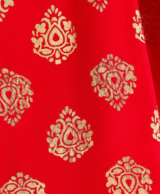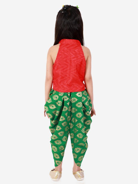 Girls Incut Style Top with Printed Dhoti Red & Green