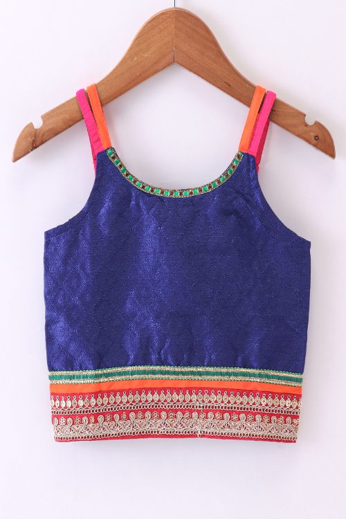 Twisha Girls Embroidered Top And Printed Dhoti- Blue & Orange