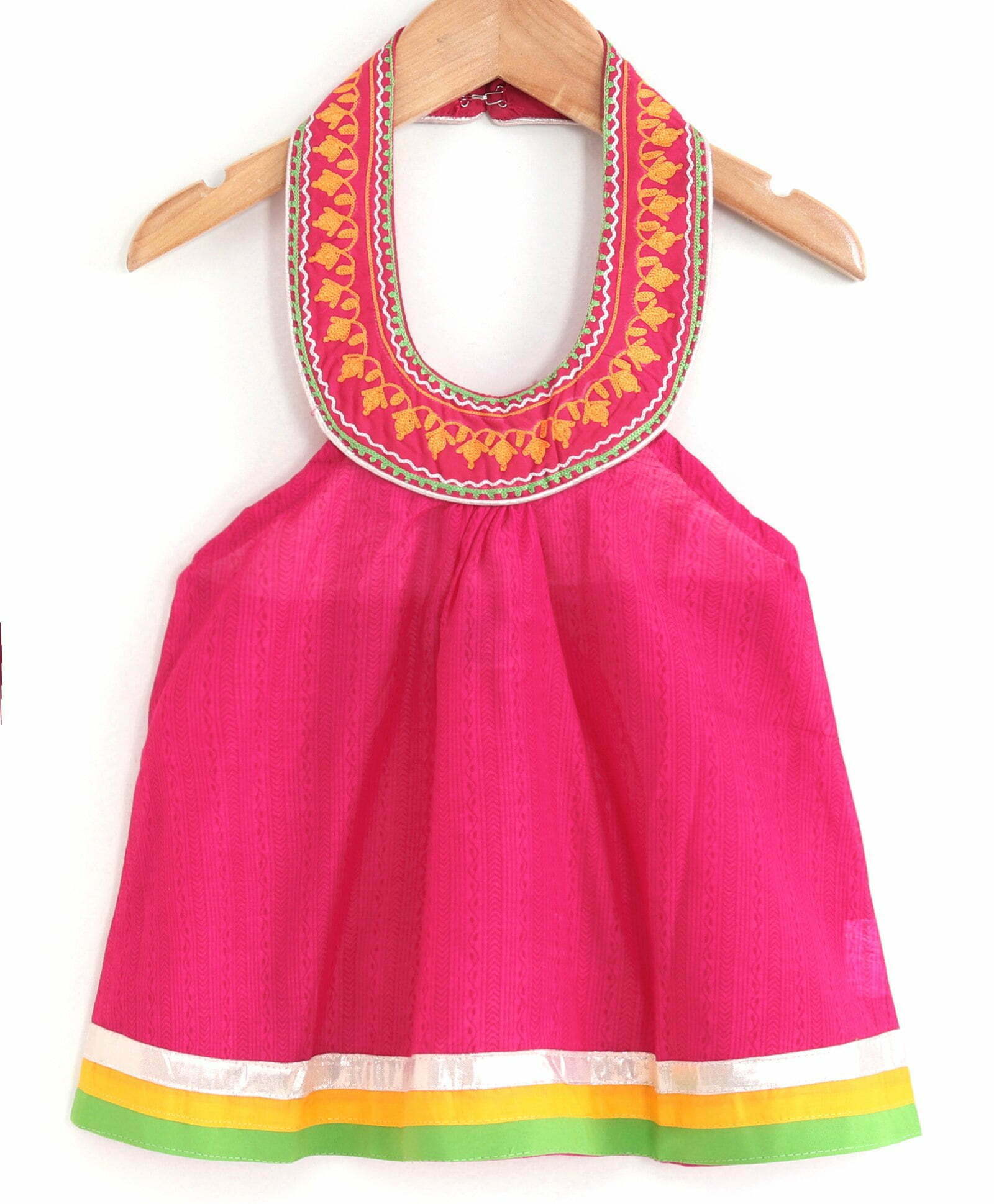 Girls Embroidered Halter Neck And Dhoti Set -Pink