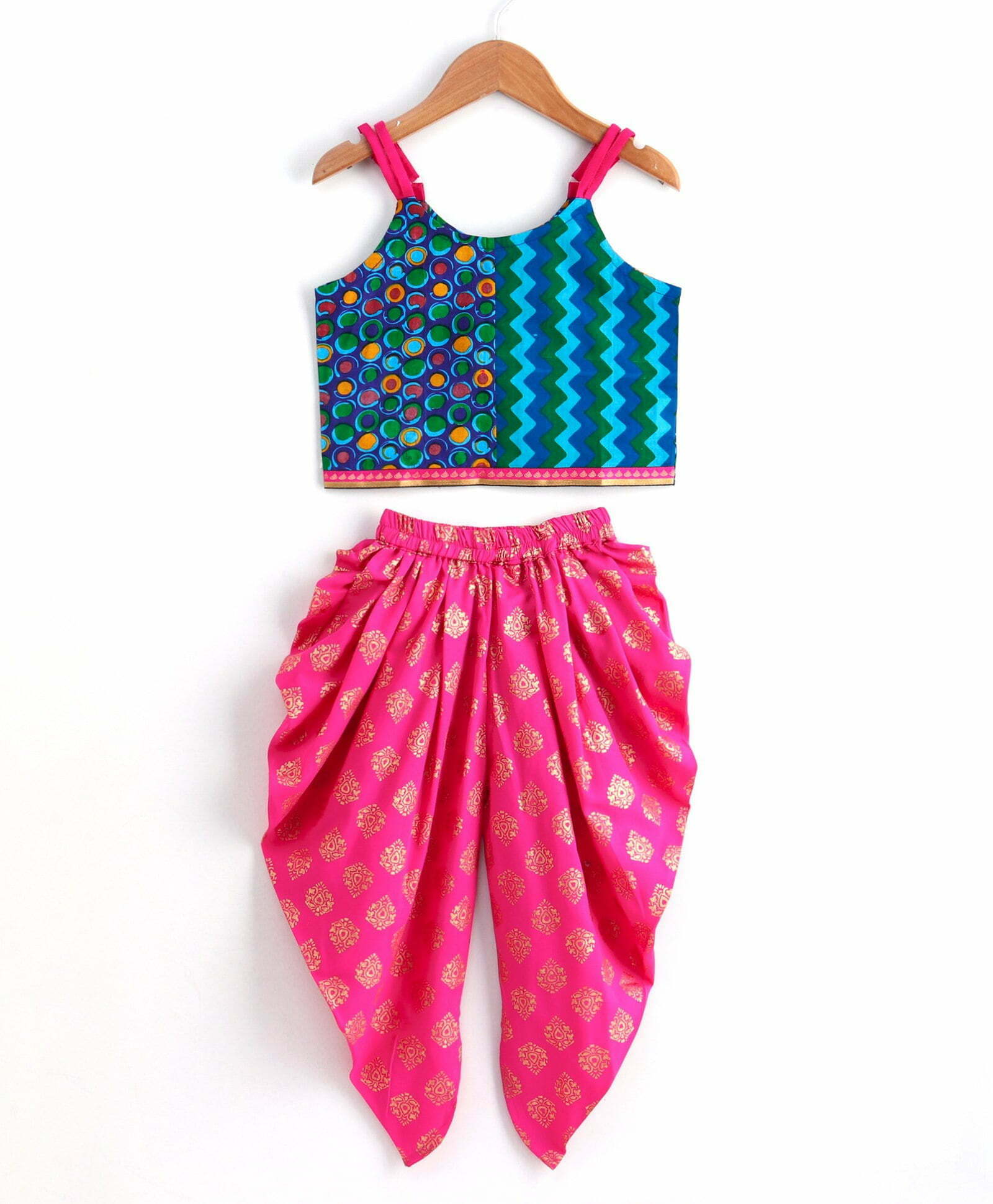Girls Half And Half Top With Dhoti Set-Blue Pink
