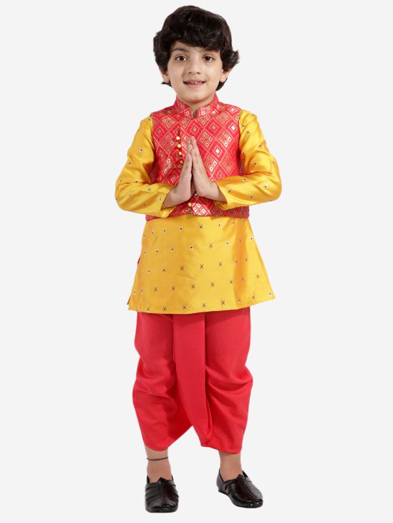 Twisha Boys Festive kurta with brocade Jacket and dhoti-red