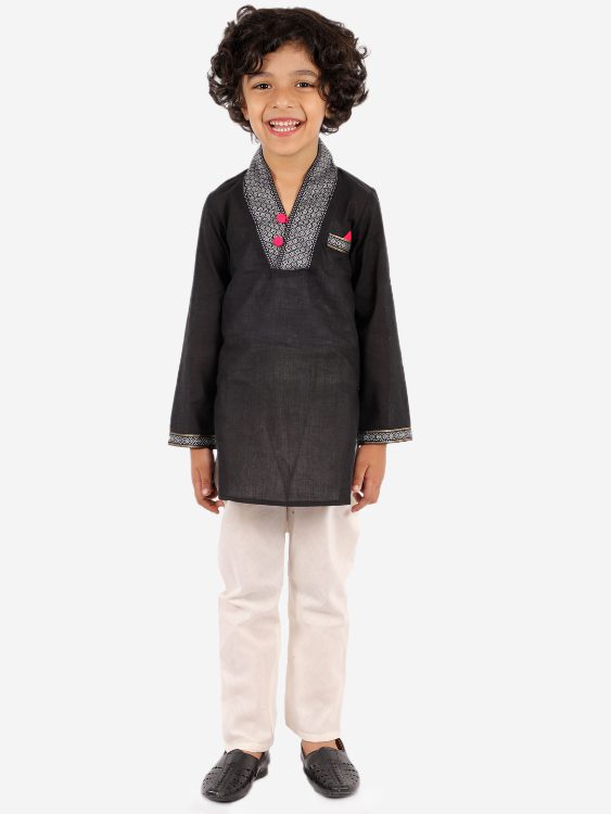 Twisha Boys High Neck Kurta with Payjama Set-Black And White