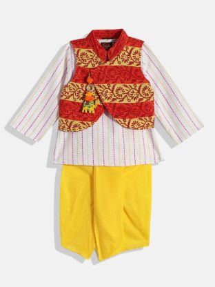 Twisha Boys Printed Kurta Dhoti and Jacket-Yellow