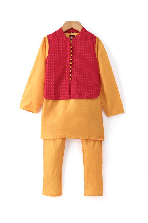 Twisha Boys Solid Kurta & Pyjama With Jacket - Yellow