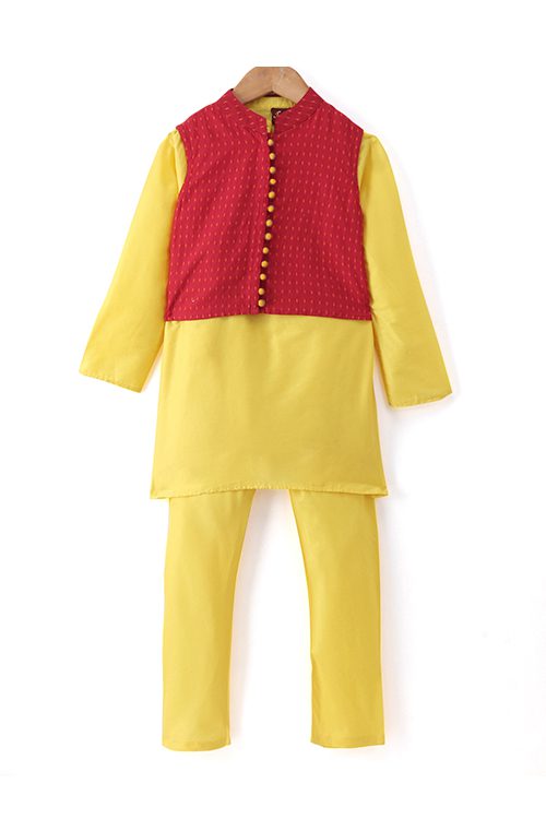 Twisha Boys Solid Kurta & Pyjama With Jacket - Yellow & Red