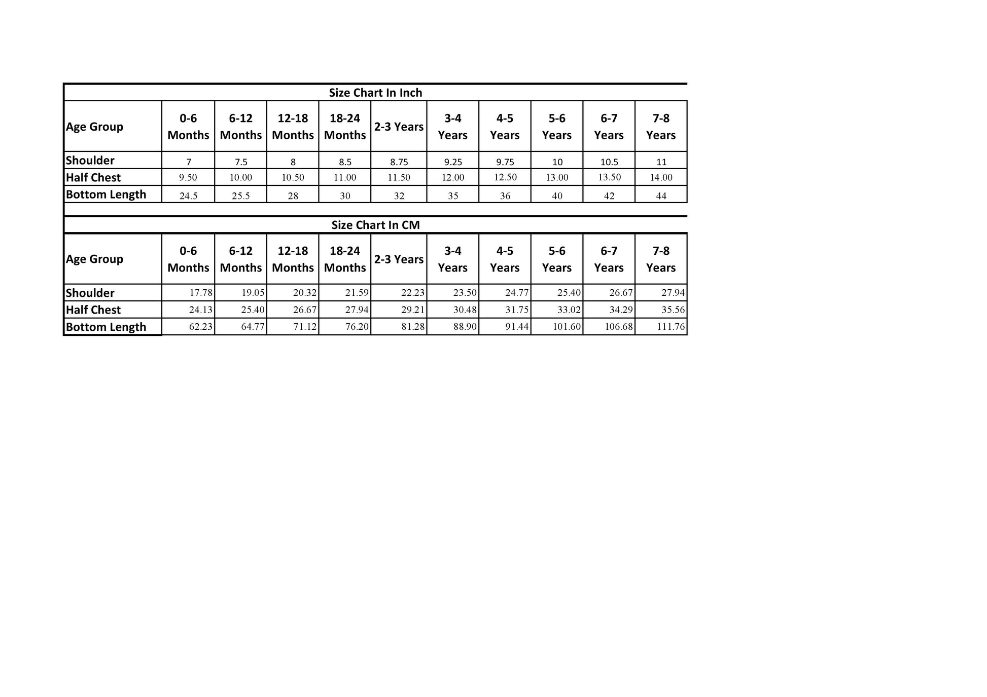 By using this sizing chart, you can confidently select the right size for your child's clothes, ensuring a comfortable and stylish fit.