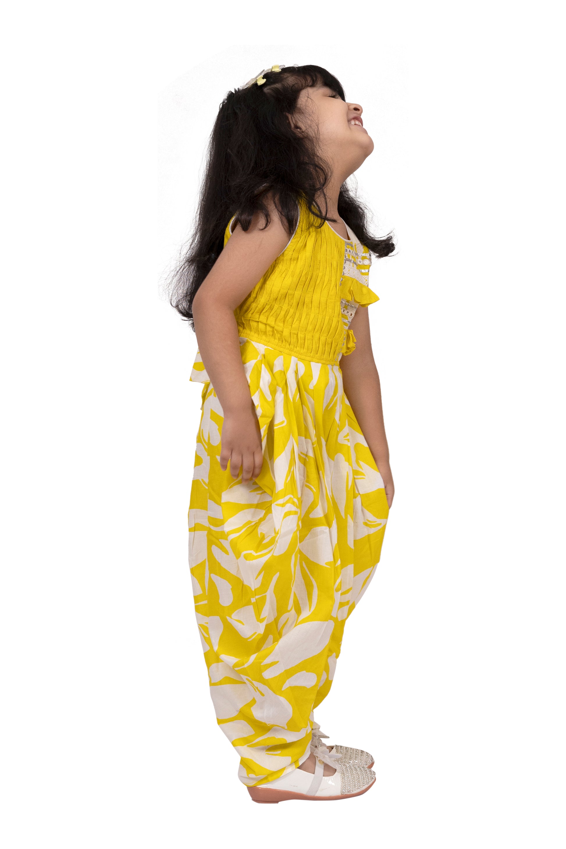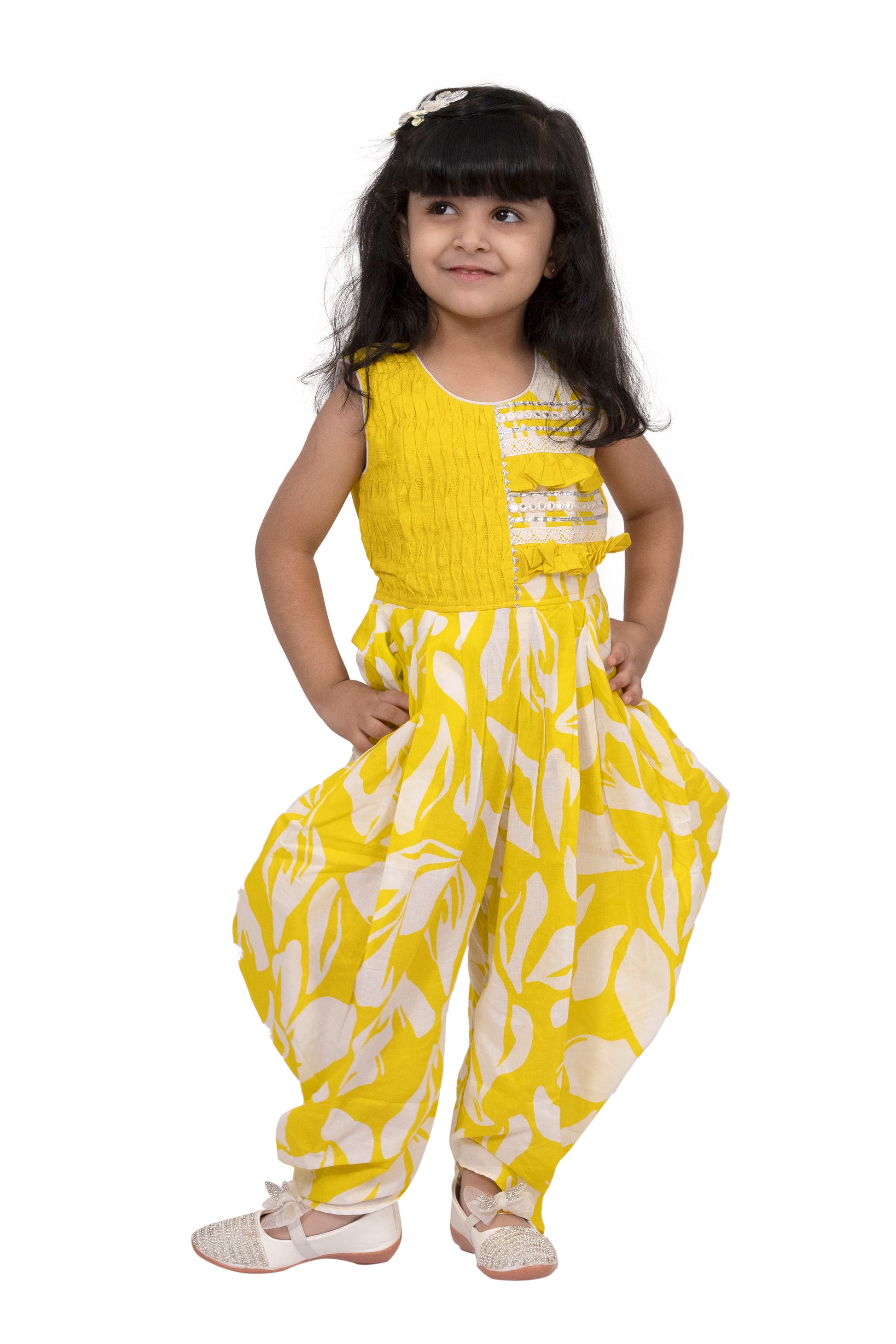 Twisha Cotton Sleeveless Embellished Jumpsuit - Yellow & White