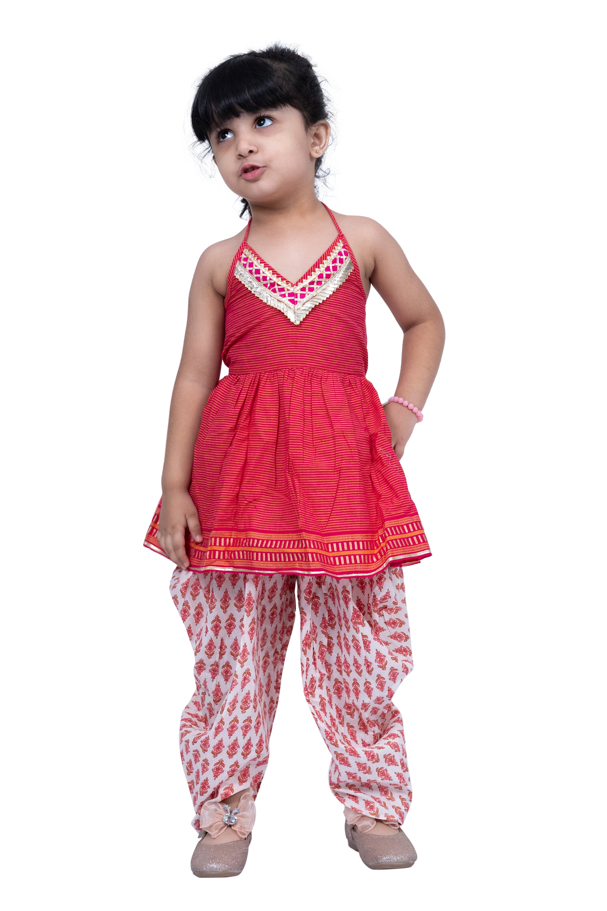 Twisha Cotton Sleeveless Stripe Design Top with Dhoti - Pink & White