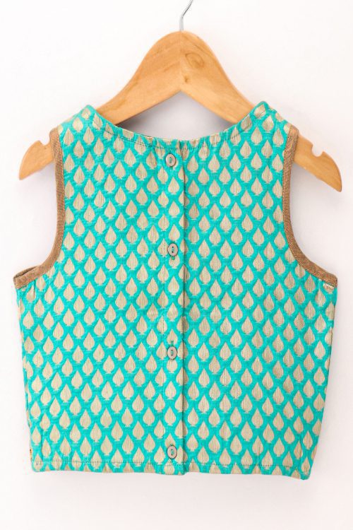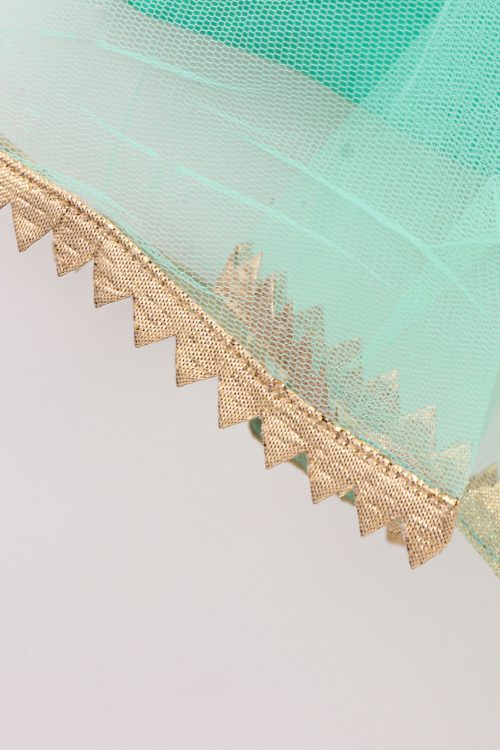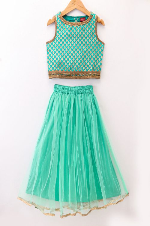 Twisha Girls brocade sleeveless Top & Net Ghagra - Sea Green