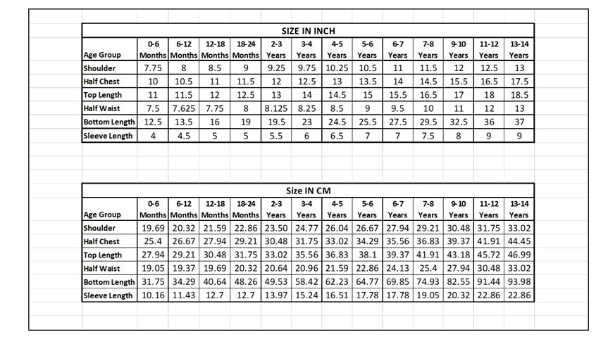 By using this sizing chart, you can confidently select the right size for your child's clothes, ensuring a comfortable and stylish fit.