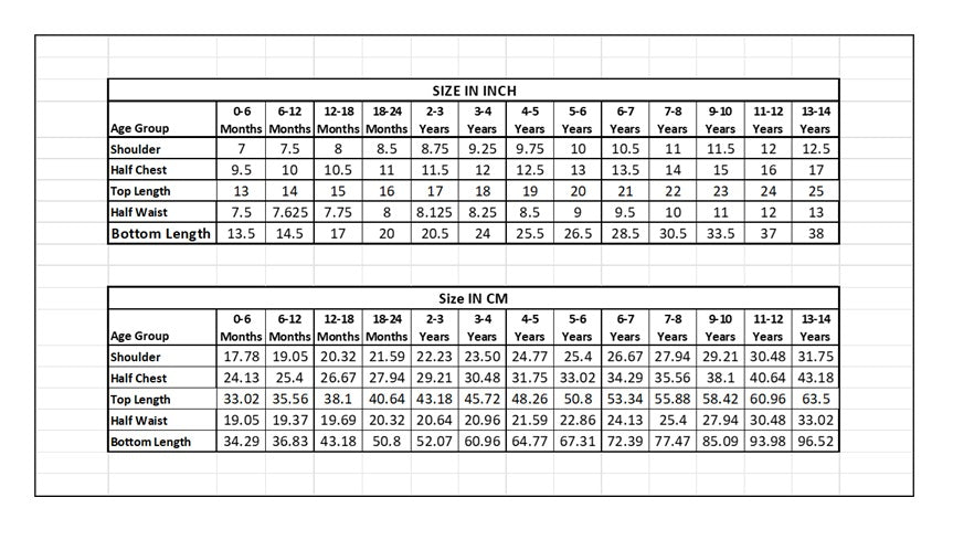 By using this sizing chart, you can confidently select the right size for your child's clothes, ensuring a comfortable and stylish fit.