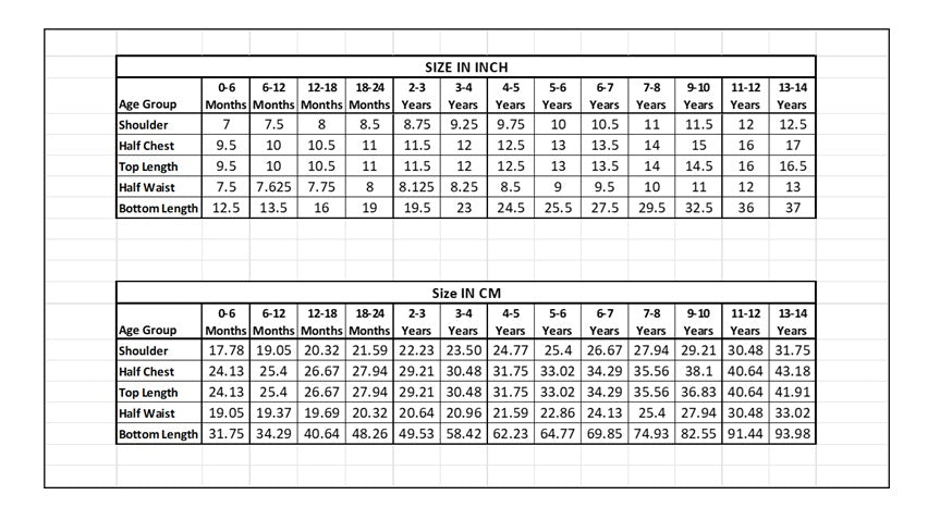 By using this sizing chart, you can confidently select the right size for your child's clothes, ensuring a comfortable and stylish fit.