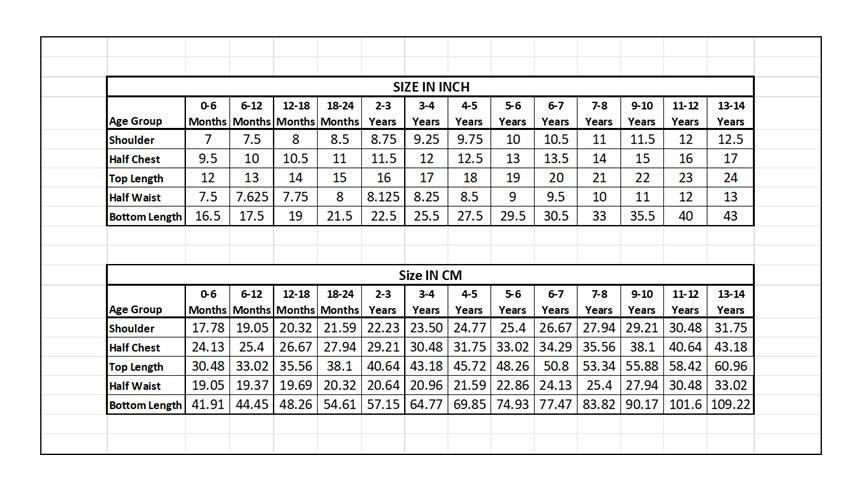 By using this sizing chart, you can confidently select the right size for your child's clothes, ensuring a comfortable and stylish fit.