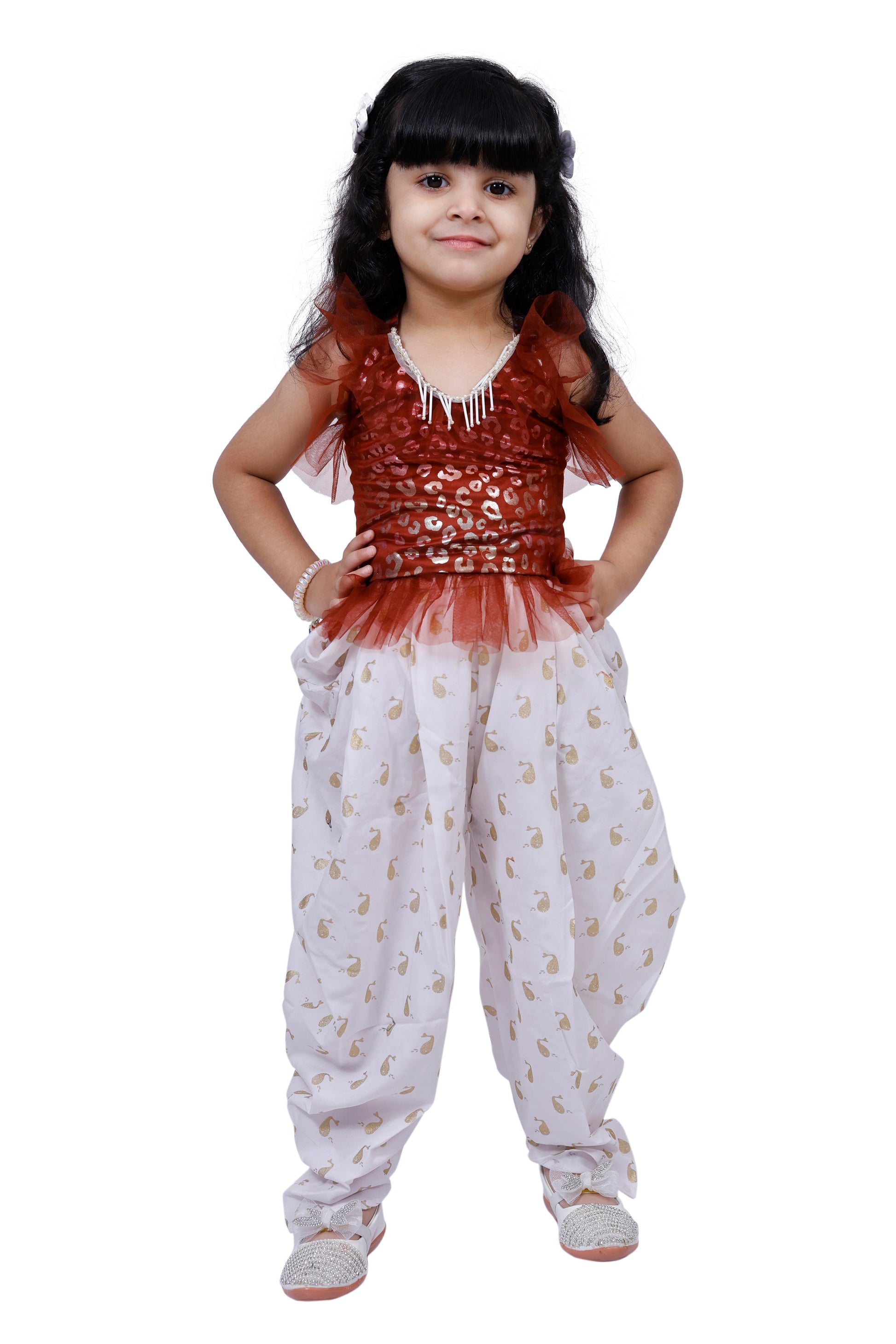 Twisha Sleeveless All over Printed Top with Dhoti -Brown & White