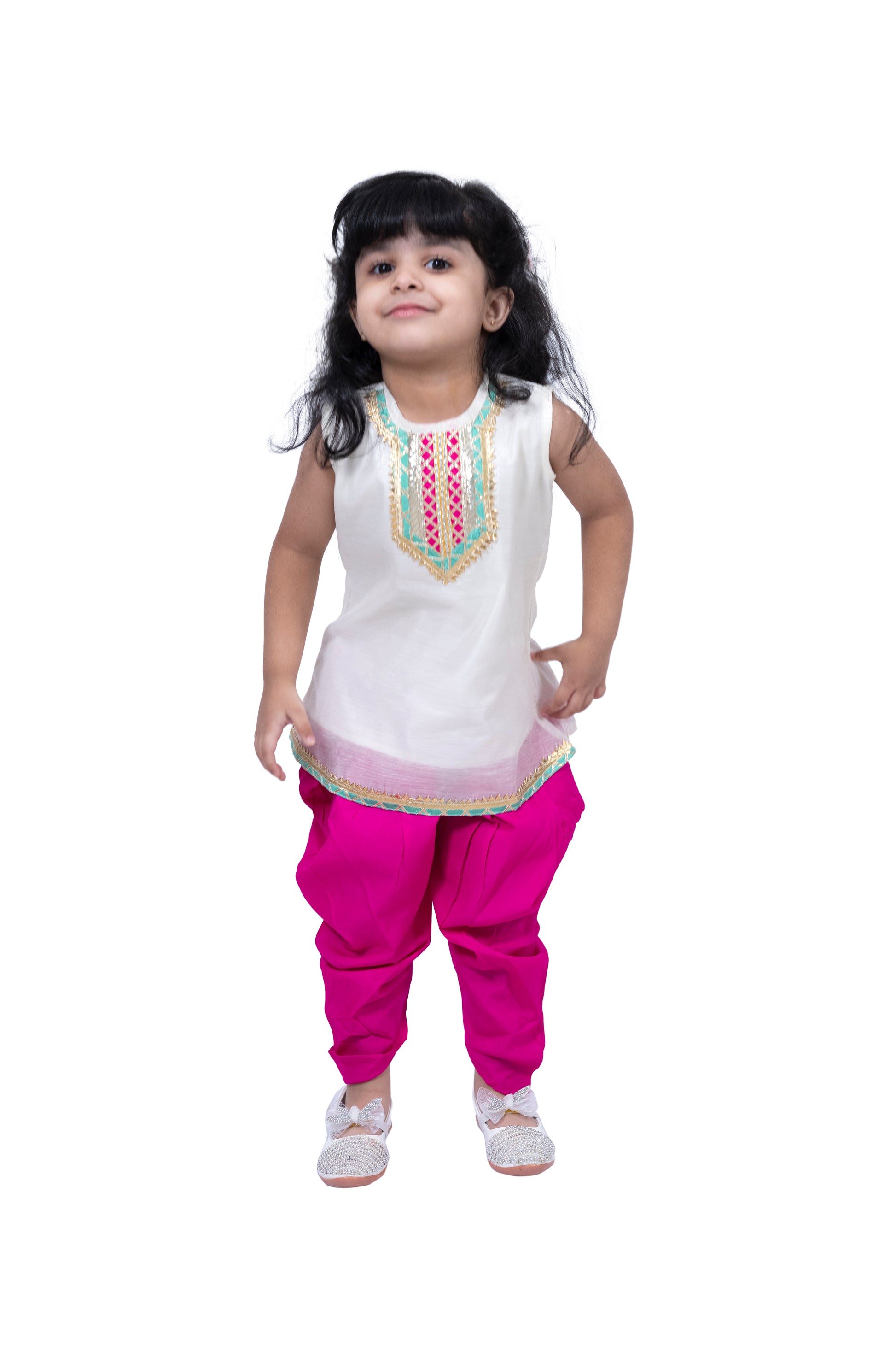 Twisha Sleeveless Embellished Top with Dhoti -White & Pink