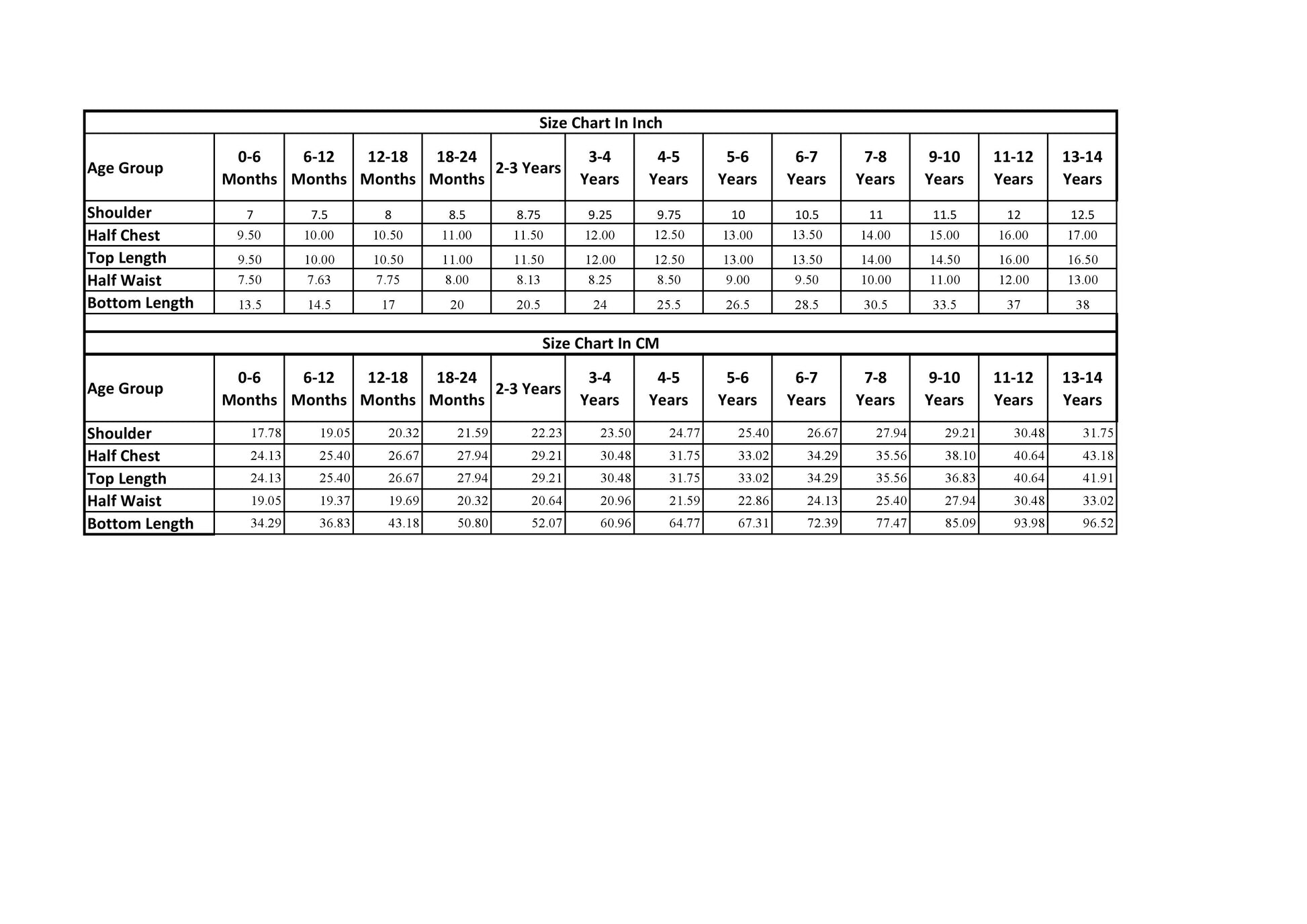 By using this sizing chart, you can confidently select the right size for your child's clothes, ensuring a comfortable and stylish fit.